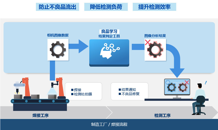 用AI實時檢測焊接工序中的不良品,并通知檢測人員進行修復