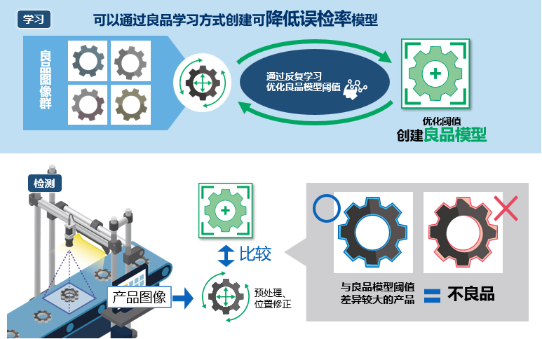 從各種良品圖像中統計學習良品的容許閾值,與之不同的將被判定為不良品