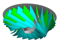 東芝將長葉片和短葉片交替分布的長短葉片轉輪應用于水泵水輪機,由此進一步提高了發電與抽水工況運行的效率和穩定性。
