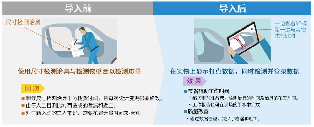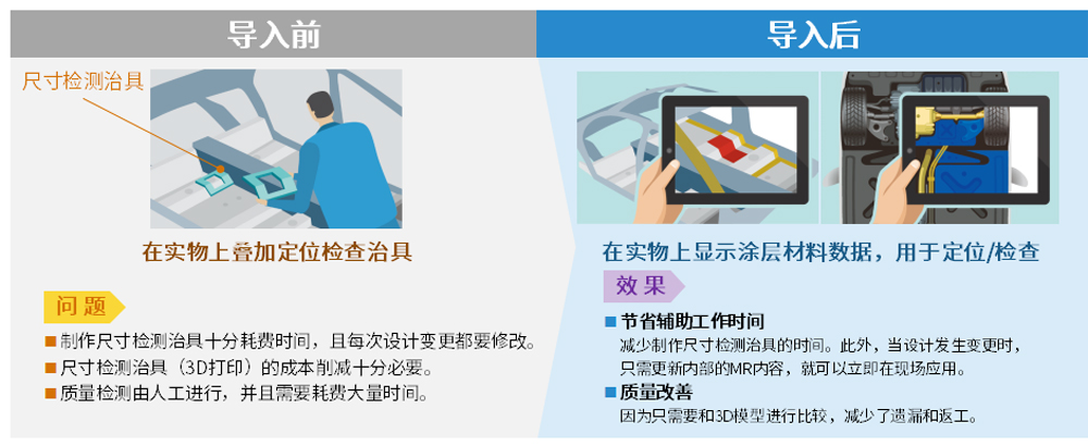 在汽車量產(chǎn)前的試制工序中,對從供應商處收到的零件,使用尺寸檢測治具對機械臂焊接的焊縫進行質(zhì)量檢查時使用MR來進行質(zhì)量抽查。