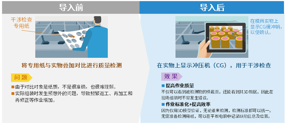 通過在生產(chǎn)金屬模具的過程中用沖壓機的圖紙(專用紙)覆蓋模具的背面來檢查沖壓機的緩沖銷和模具之間是否契合。