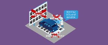 只要有平板電腦,就可以將3D模型數據疊加在實際物體上。因此無需特殊設備或者搭建專門檢查室就可以在進行作業。