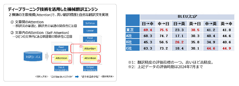 ● 最新のディープラーニング技術と東芝獨自技術により、高精度かつ高速な業務向け機械翻訳サービスを実現