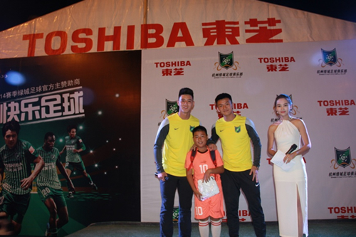 東芝于2014年正式成為杭州綠城俱樂部的主贊助商,繼續為國內頂級足球賽事注入動力,并提出了“東芝快樂足球”的口號。未來,與中國足球結緣的東芝將再接再厲,使“推動中國足球事業發展”,“助力中國青少年健康成長”的理念更好地融入社會實踐,也讓東芝的“快樂足球”綻放出更美更絢爛的色彩。