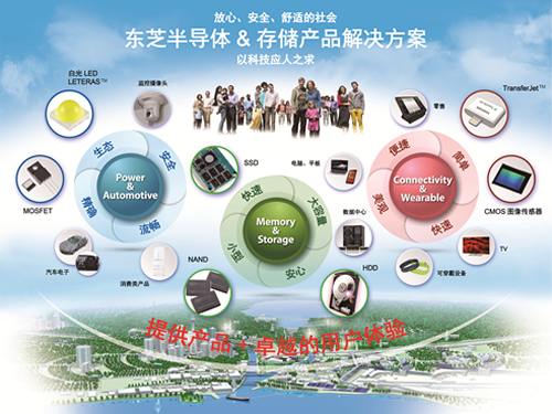 “Human Smart Community(智社會 人為本)”,意為東芝致力于實現“安心、安全、舒適的社會”。“lifenology”是英文Life(生命、生活)和Technology(技術)組合而成的詞語,其喻意是通過東芝尖端的科技實力、產品及服務讓人們的生活更加舒適和智能。發布會上,東芝電子(中國)有限公司董事長兼總經理田中基仁先生、東芝電子亞洲有限公司副董事長野村尚司先生、東芝半導體&存儲產品公司技術營銷部總經理兼技術營銷總監吉本健先生共同出席,闡述東芝如何融合其在綜合領域的優勢,通過為人們帶來新價值及新體驗的“lifenology”,實現“Human Smart Community(智社會 人為本)”的全新事業理念。