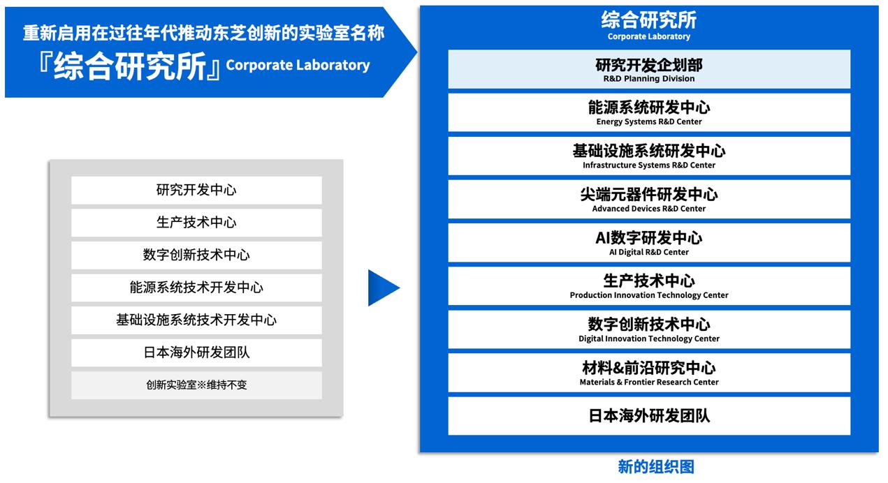 東芝曾開發出日語文字處理器和NAND型閃存等許多世界首創和日本首創的技術。在1969年至1992年間,支撐這些研發的正是當時的“綜合研究所”。在當今充滿不確定性、復雜且嚴峻的挑戰面前,東芝希望通過技術再次為社會問題的解決做出貢獻,并加速集團的成長。因此,東芝決定重新啟用“綜合研究所”這一名稱。東芝將充分利用其研發部門的優勢,即多樣化的自主創新文化和高水平的研究能力,通過與集團內部、客戶、合作伙伴以及社會的共創,加速創新技術的開發與商業化,實現東芝集團的經營理念——“為了人類和地球的明天”。