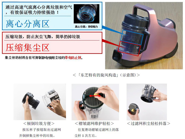 2.高速分離和壓縮集塵的「東芝特有的旋風(fēng)構(gòu)造」