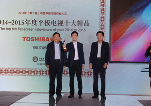 【2014年12月25日】2014年12月17日,由中國電子商會(CECC)和中國電子技術標準化研究院(CESI)共同主辦的“2014年(第十屆)中國平板電視行業大會”在北京舉行。會上,萬眾矚目的“2014-2015年度中國平板電視十大精品”榜單最終揭曉,東芝夢劇場系列65U7450C以“堅持畫質本質”的卓越表現成功獲選,顯示了突出的行業影響力與市場關注度。