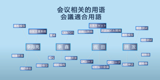 為防止未知詞匯造成的聲音識別精度和翻譯精度下降,東芝還研發了關鍵詞抽取技術。即從會議資料中自動抽取專業術語等會議所需詞匯,在會議開始前預先存儲該詞匯的正確翻譯。經過文本整理后的原文,通過關鍵詞抽取技術和東芝獨有的統計型+規則型混合機器翻譯方式進行處理,對各種發言實現高品質翻譯。