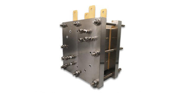 圖1:本次開(kāi)發(fā)的電解堆(電極面積100c㎡,4層電解槽堆疊)外觀圖