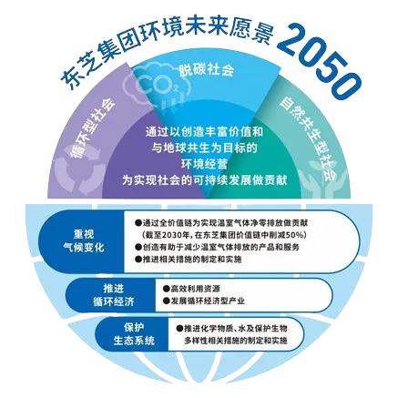 以“為了人類和地球的明天”為經營理念的東芝,將環境對策作為企業經營最重要的課題之一。力圖實現“截至2030年為止東芝集團價值鏈中的溫室氣體排放將減少70%(相對于2019年度),截至2050年實現溫室氣體凈零排放”*2的目標。
