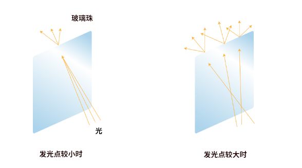 吊燈的玻璃珠起到了棱鏡的作用。當光線由較小的發光點進入玻璃珠,會自動折射成七種顏色。相反,當它由較大的發光點入射,進入玻璃珠的光就會從各個方向分別擴散,相互混合后再返回到原始的光色。